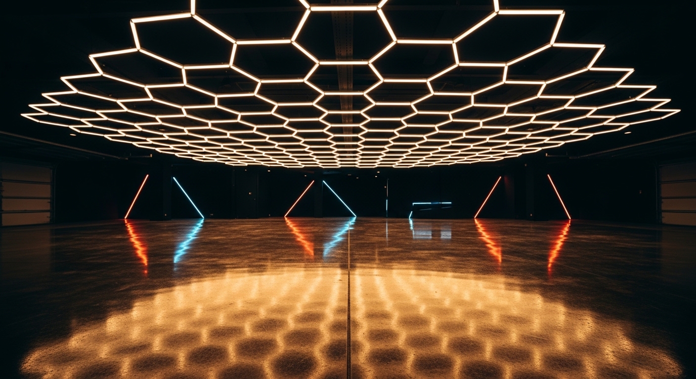 Most garage lighting fails because contractors use cheap fixtures and no plan. Our LED honeycomb systems and smart controls deliver powerful, even light that transforms your workspace.